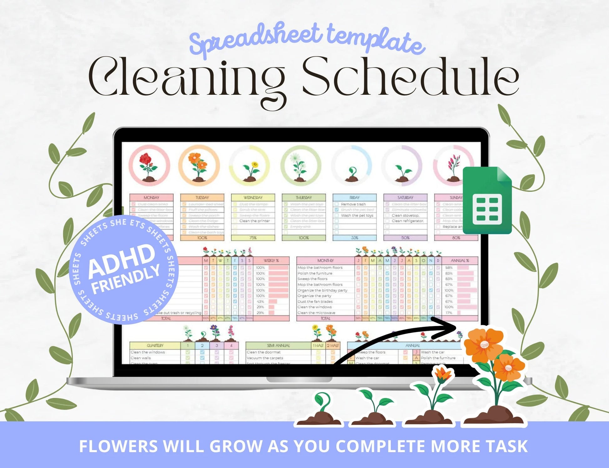 DHD Cleaning Schedule, Spreadsheet Template, Weekly, Monthly, Annual Cleaning Checklist, Cleaning Tracker